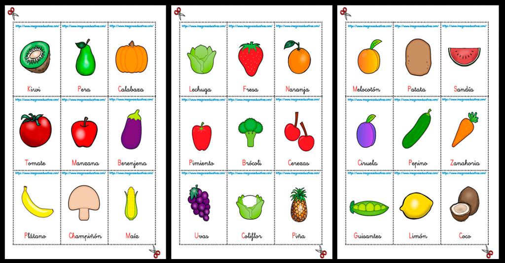 Bonita lotería de imágenes con vocabulario de Halloween.