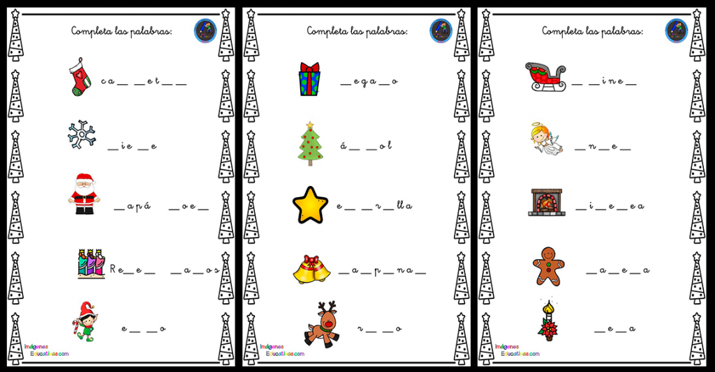 Bonita lotería de imágenes con vocabulario de Navidad.