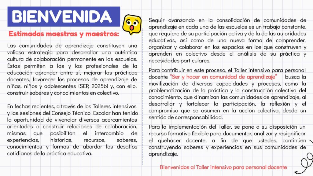 El Taller Intensivo para Personal Docente · Resuelto es una herramienta de gran utilidad para acompañar y fortalecer el trabajo del profesorado durante los procesos de reflexión y planeación escolar. Contar con ejemplos y productos contestados permite enfocar los esfuerzos en la mejora real del aprendizaje y la práctica educativa.